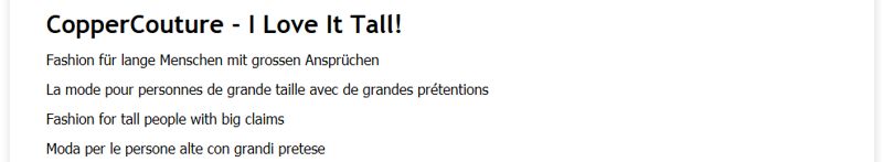 Überlängen Shops - Fasion für lange Menschen - Copper Couture