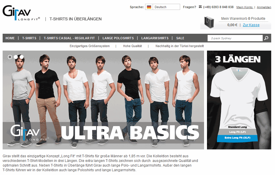 Das Shopping-Portal für Überlängen, entwickelt von